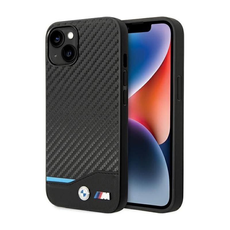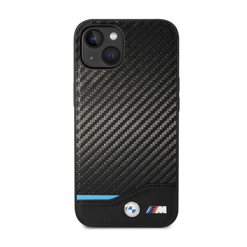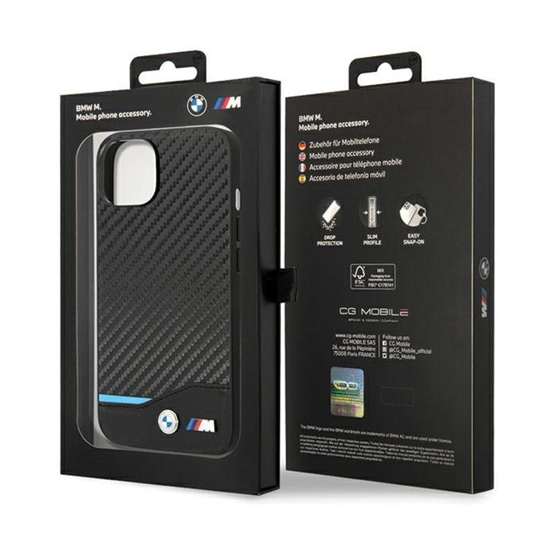 BMW Leather Carbon Blue Line - Etui iPhone 13 (Czarny)