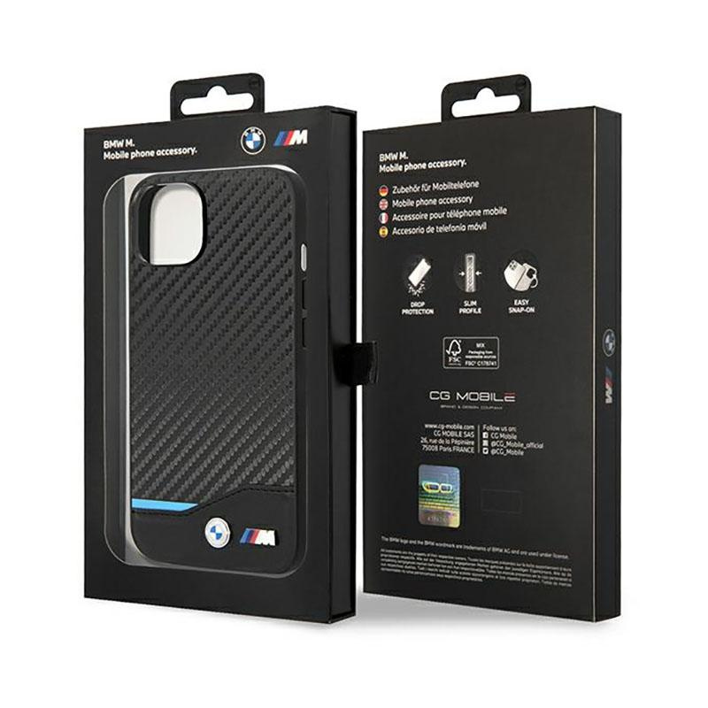 BMW Leather Carbon Blue Line – Etui iPhone 14 Plus (Czarny)