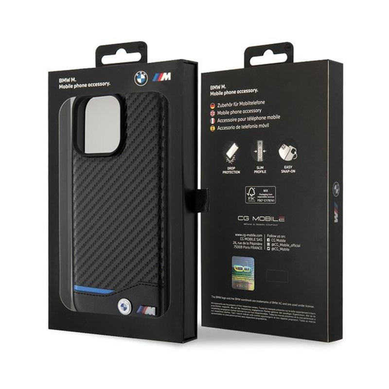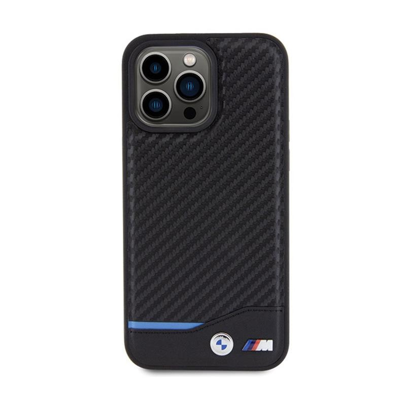 BMW Leather Carbon Blue Line - Etui iPhone 15 Pro Max (czarny)