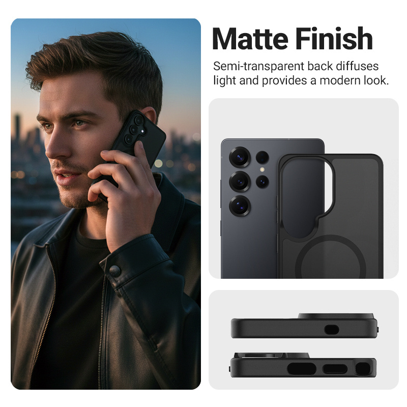 Crong Hybrid Matte Magnetic to nowoczesne etui do Samsung Galaxy S25 Ultra, które łączy elegancki design, wysoki poziom ochrony oraz pełną kompatybilność z akcesoriami MagSafe. Zaprojektowane z myślą o codziennym użytkowaniu, skutecznie chroni telefon przed skutkami upadków, zarysowaniami i zabrudzeniami.