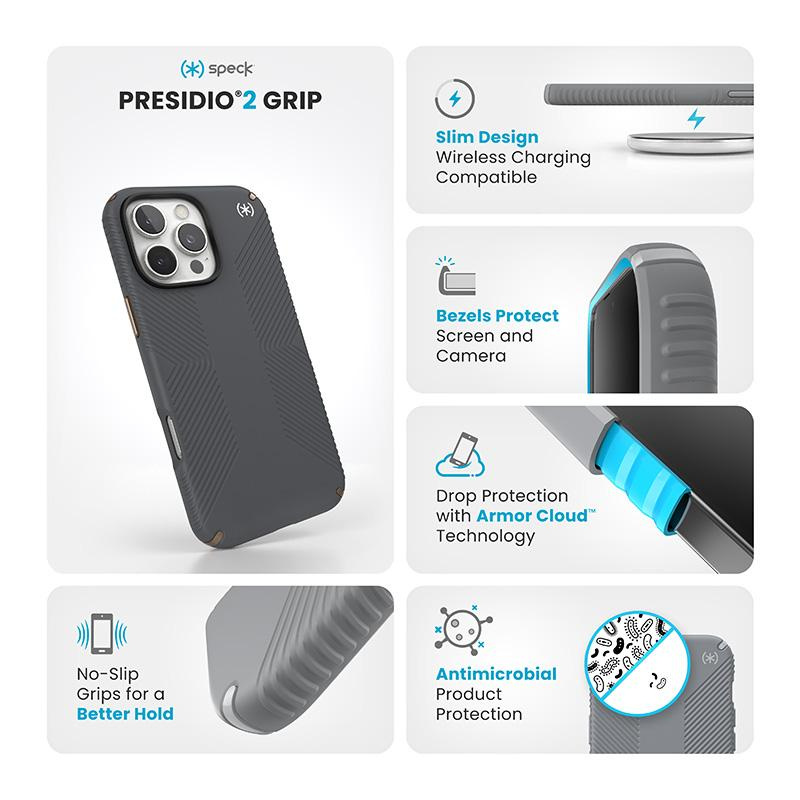 Etui do iPhone 16 Pro Max Speck Presidio2 Grip Oryginalne Szare Wytrzymałe