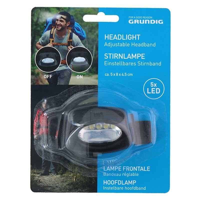 - Latarka czołowa LED marki Grundig z 5 diodami pozwala otrzymać bardzo dobre oświetlenie w każdym miejscu, gdzie tego potrzebujesz. Sprawdzi się podczas wykonywania wszelkich prac wymagających oświetlenia, nie angażując jednocześnie rąk. Jej niezwykle lekk