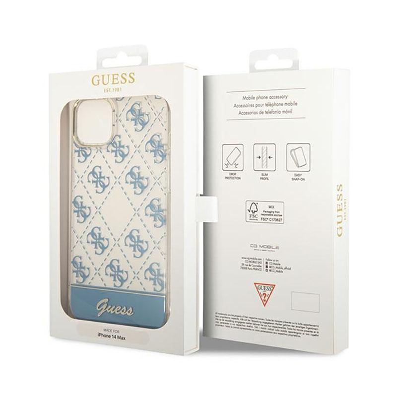 Guess 4G Stripe Script Logo Electroplated Pattern – Etui iPhone 14 (niebieski)