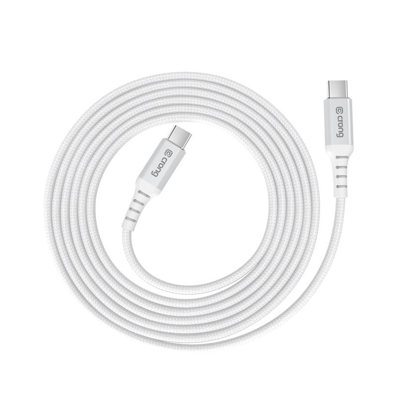 KABEL USB C 1.5m SZYBKIE ŁADOWANIE, Biały, Oplot, 60W PD 3A, Crong