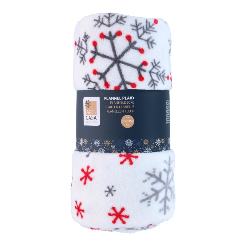Koc Świąteczny Biały 150x200 Mikroflanela Miękki Ciepły Z Wzorem Arti Casa