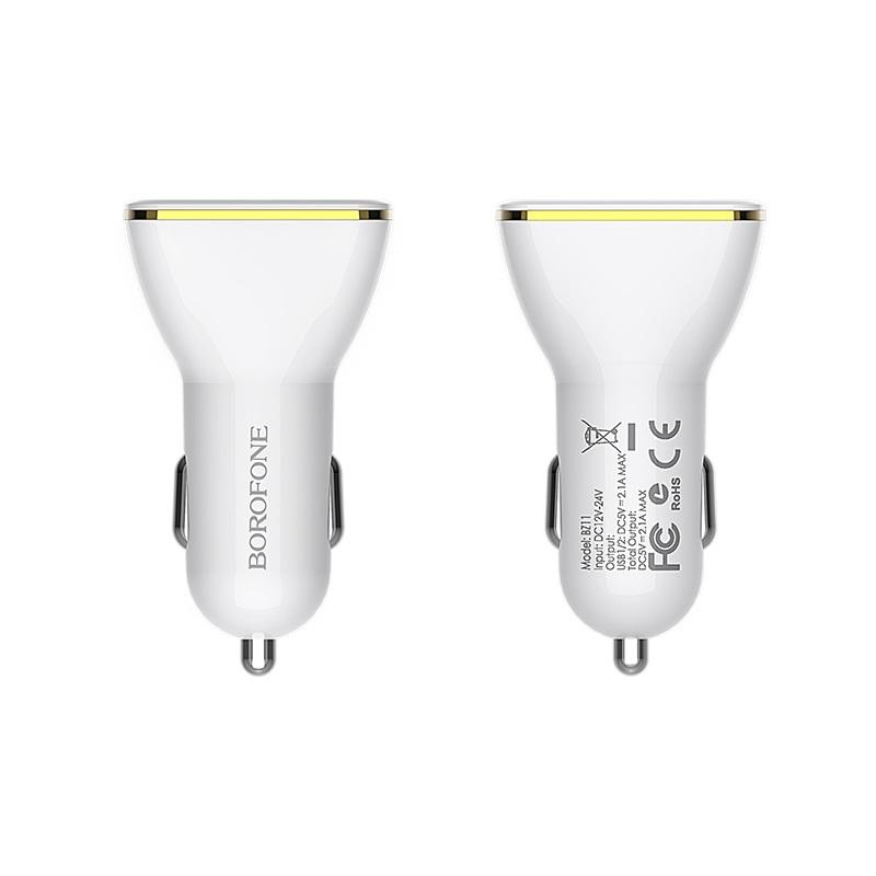 Ładowarka Samochodowa do Telefonu 2x USB Borofone z Wyświetlaczem LED Biała