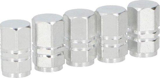 Zestaw 5 solidnych nakrętek do wentyli samochodowych wykonane z aluminium.