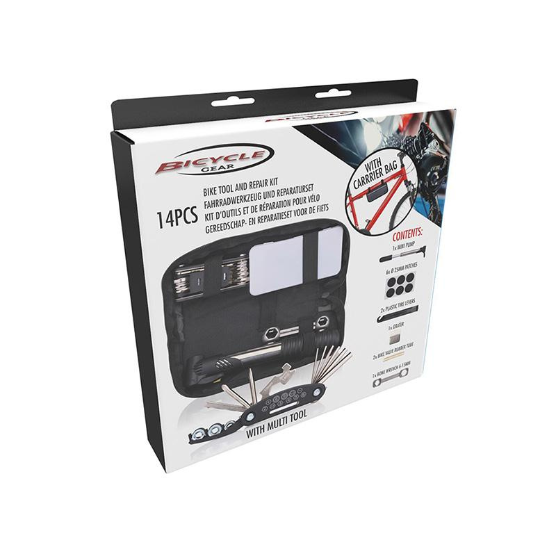 Zestaw narzędzi rowerowych w etui od Bicycle Gear, składający się z 14 elementów, który jest niezbędny przy naprawie każdego roweru i nie tylko. To idealny gadżet dla każdego właściciela dwóch kółek, który doceni jego poręczność i kompaktowość.